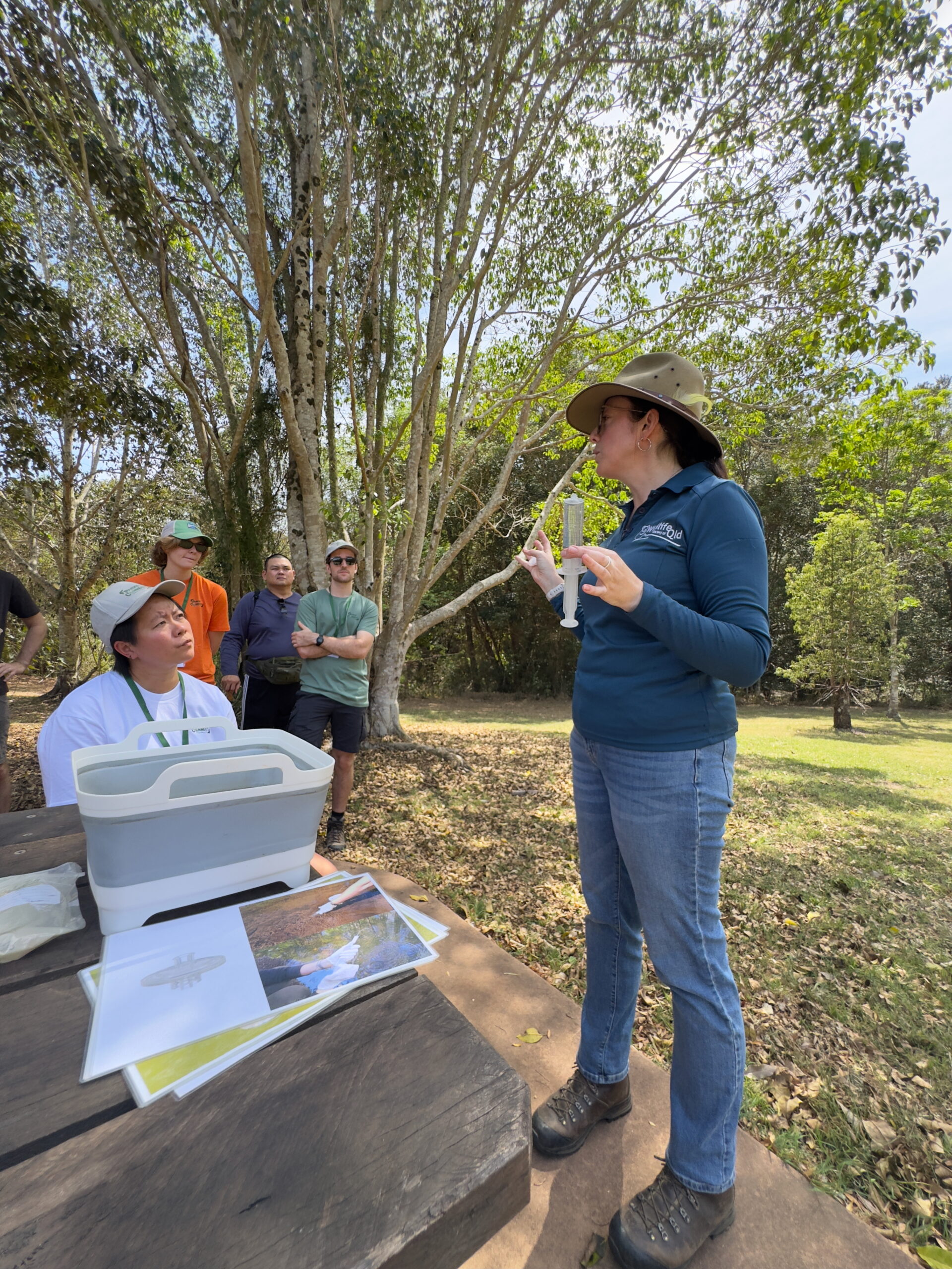Dr Tamielle Brunt, Wildlife Queensland’s PlatypusWatch Network and @PlatypusProtector, didn’t let the dry deter her! With years of eDNA data under her belt, she revealed a wealth of knowlege about platypus ecology and gave us a demonstration of how easy it is for citizen scientists to get involved.