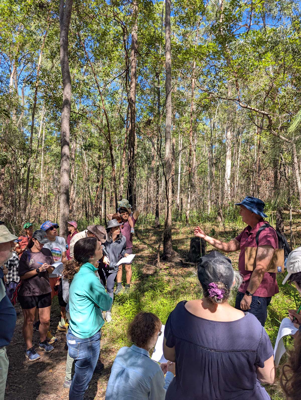 Expert Paul Donatiu from the Queensland Threatened Plant Network led us on a walk of the Crebra Circuit (named after Eucalyptus crebra, which dominates this dry eucalypt forest) to discover the special flora of Samford Conservation Park. Hosted in conjunction with the World Science Festival, organised by the Queensland Museum, this was a well-attended walk. Whether the plants were native, at risk, or invasive, Paul was a wealth of knowledge. We even got to spot a ground orchid, although not a threatened Caladenia species this time. With more than 800 species of plants listed under the Queensland Nature Conservation Act 1992, Paul’s walk and talk was a classic example of just how important groups like the QTPN are to ensuring these silent species don’t slip away unnoticed. Get more involved with the QTPN HERE.