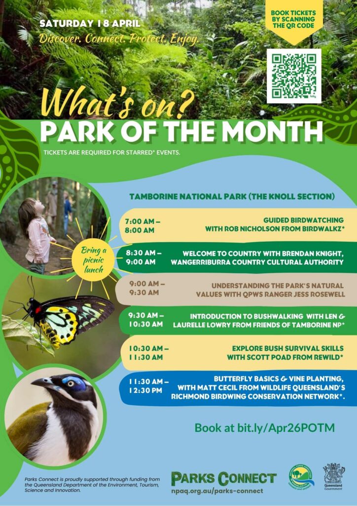 Join us at The Knoll section of Tamborine National Park on Saturday 18 April 2026 and explore the green behind the Gold Coast.