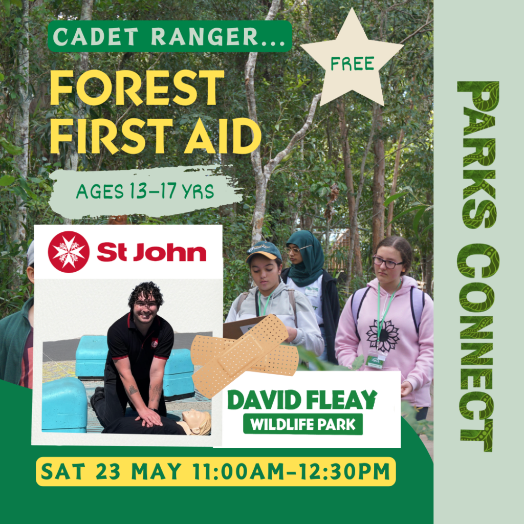 Learn basic outdoor first aid at this FREE Cadet Ranger – FOREST FIRST AID – event at David Fleay Wildlife Park.