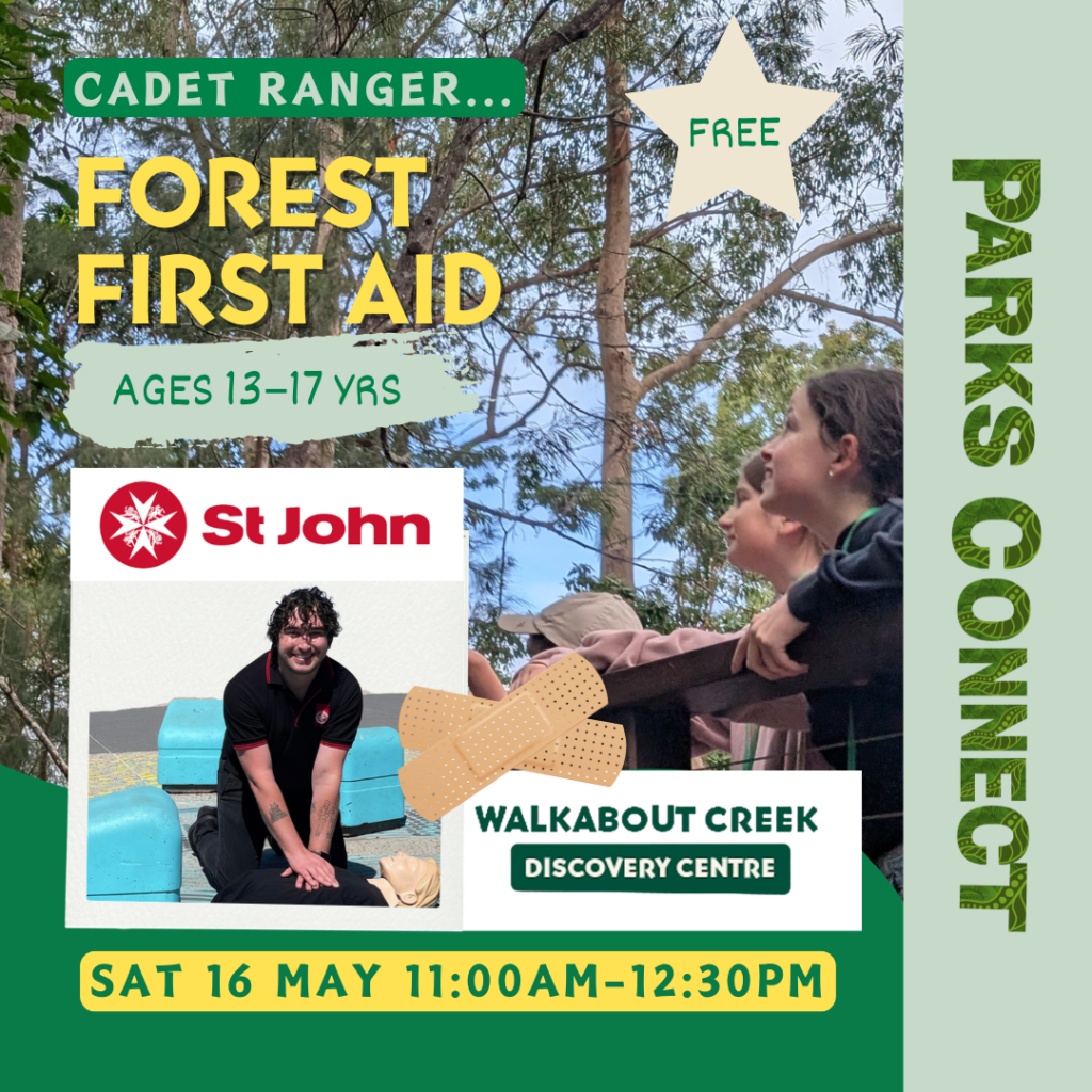Do you know what to do if you have a mishap in the bush? Whether it’s a scraped knee, sprain or sting, you’ll know exactly how to help after this Cadet Ranger (ages 13–17) FOREST FIRST AID session at Walkabout Creek Discovery Centre with first-aid trainer Scott from St John Ambulance Queensland.